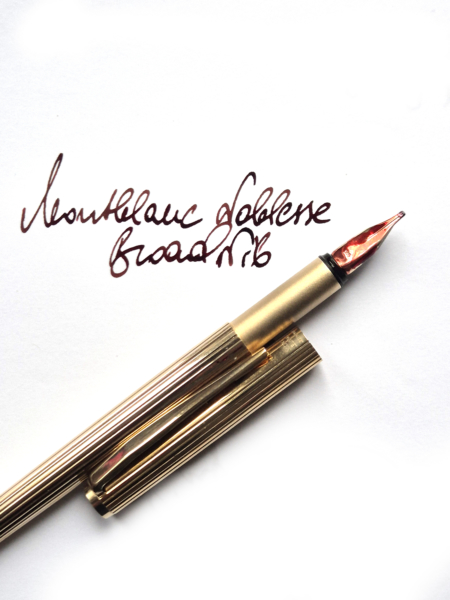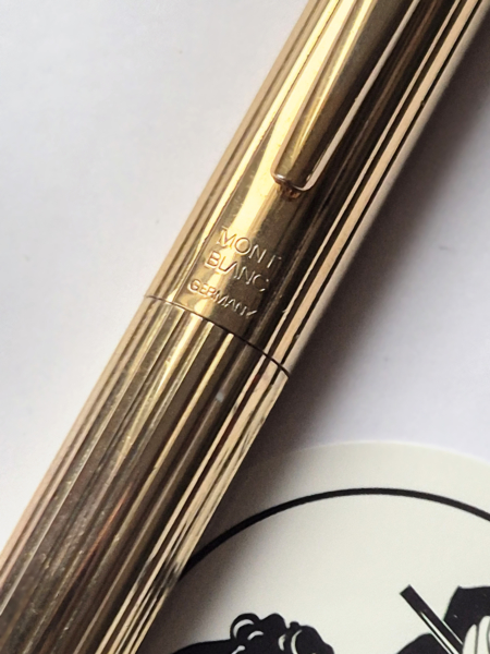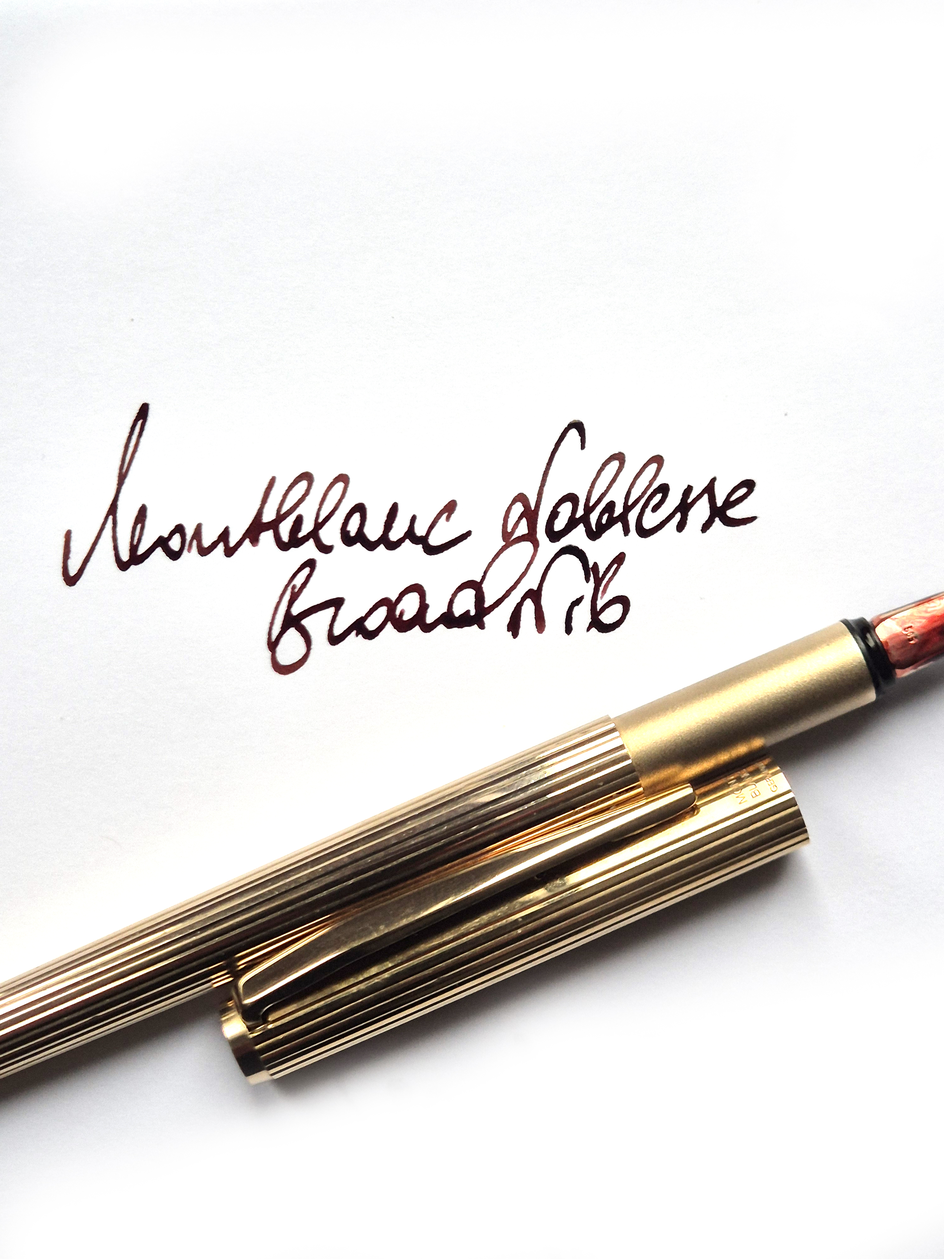 For sale is Montblanc Noblesse pen, cartridge filler, made in Germany in the 1990’s. Very good condition with no dings. Very light signs of use on the clip. In my opinion very elegant pen and a real eyecatcher. Crazy double broad nib with LOADS of iridium gives an extremely pleasant writing experience. I must say I have some difficulties parting with this pen :).