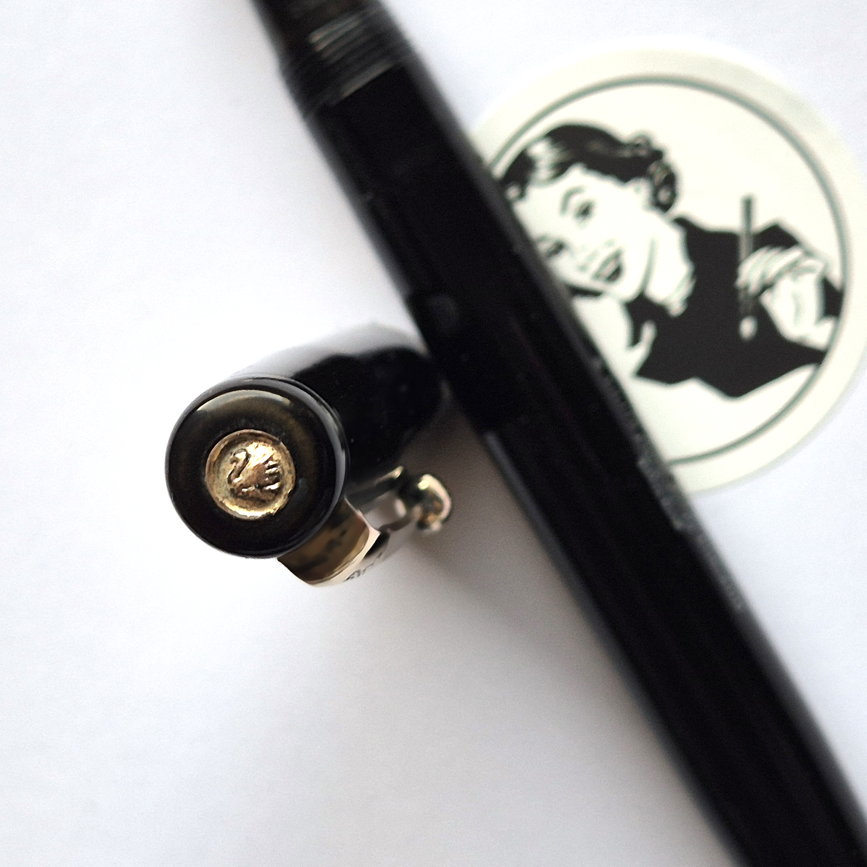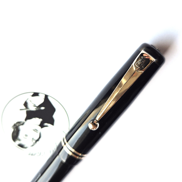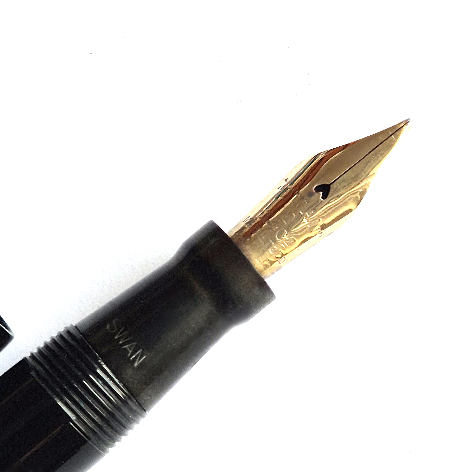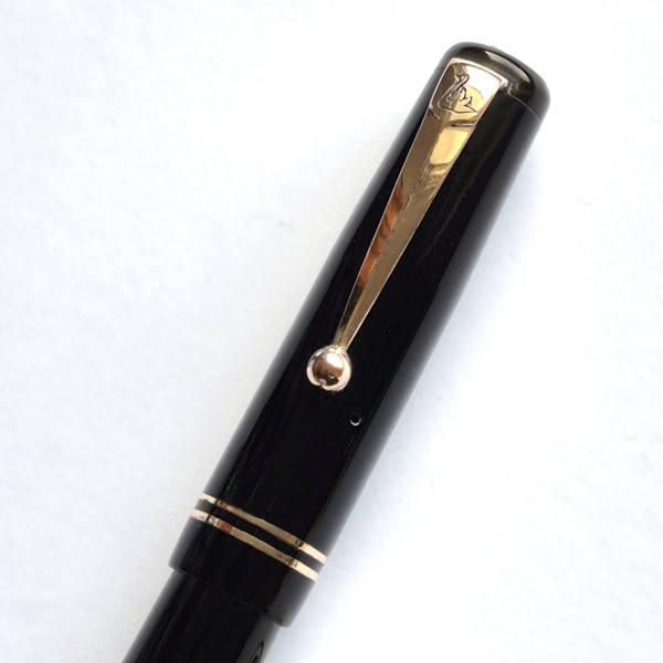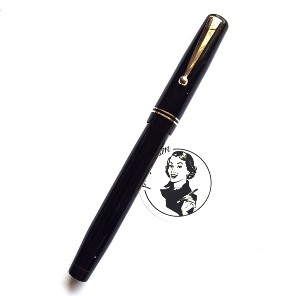 For sale is an elegant Swan pen, 0160. Made in England in the late 1930’s. Made of celluloid, twist filler. Very good condition with no dents, chips or deeper scratches, very good plating and imprints. Very nice Swan nr 2 14ct nib, fully flexible, f-1,7mm. It’s not the softest flex, but it snaps very quickly back. ‘