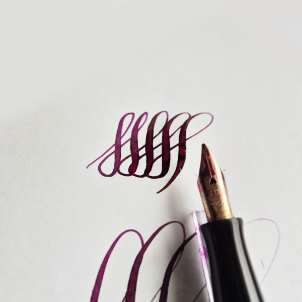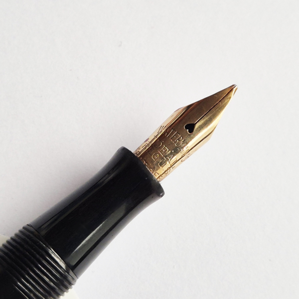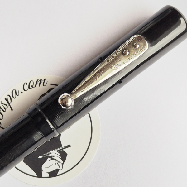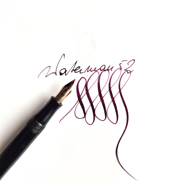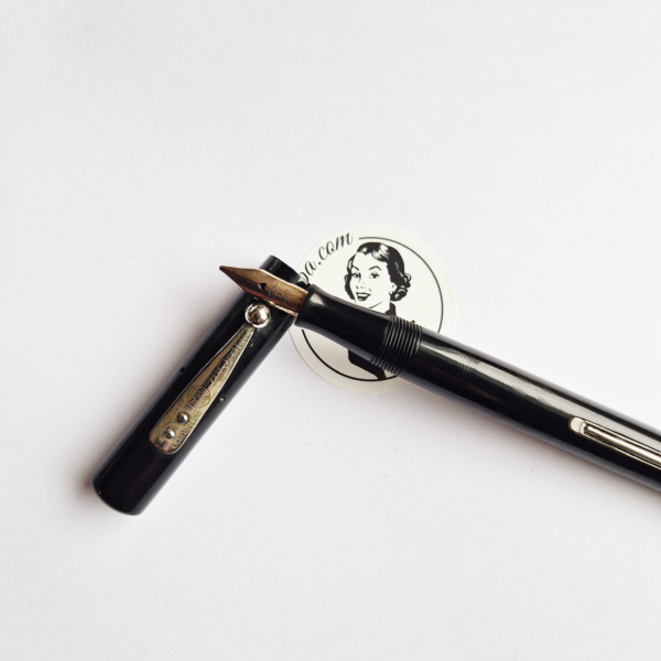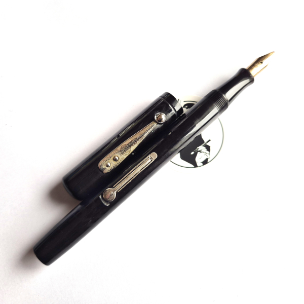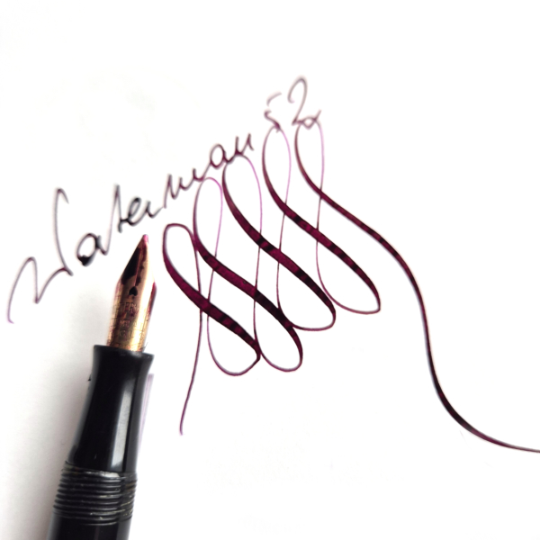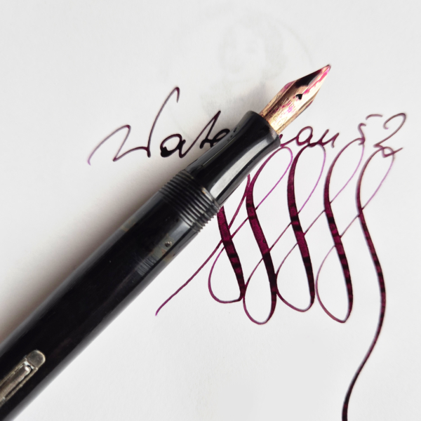 Made in the USA, 1920’s, made of ebonite (BCHR). Very good imprints, no cracks or scratches. Chasing visible. Deep black colour. Waterman Ideal nr 2 nib, typical for this model – lightly stubbish, full flex – 1.8mm, very smooth.